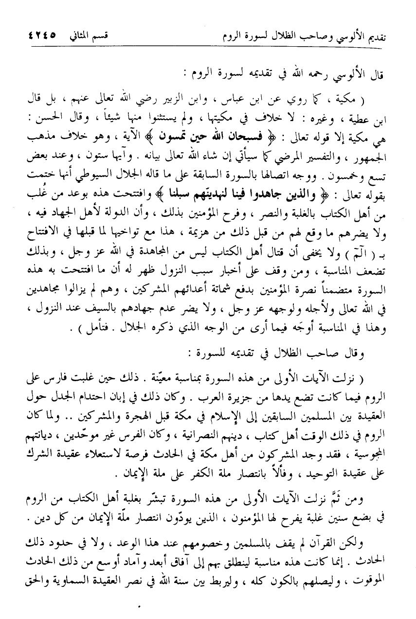 قال الألوسي رحمه الله في تقديمه لسورة الروم: