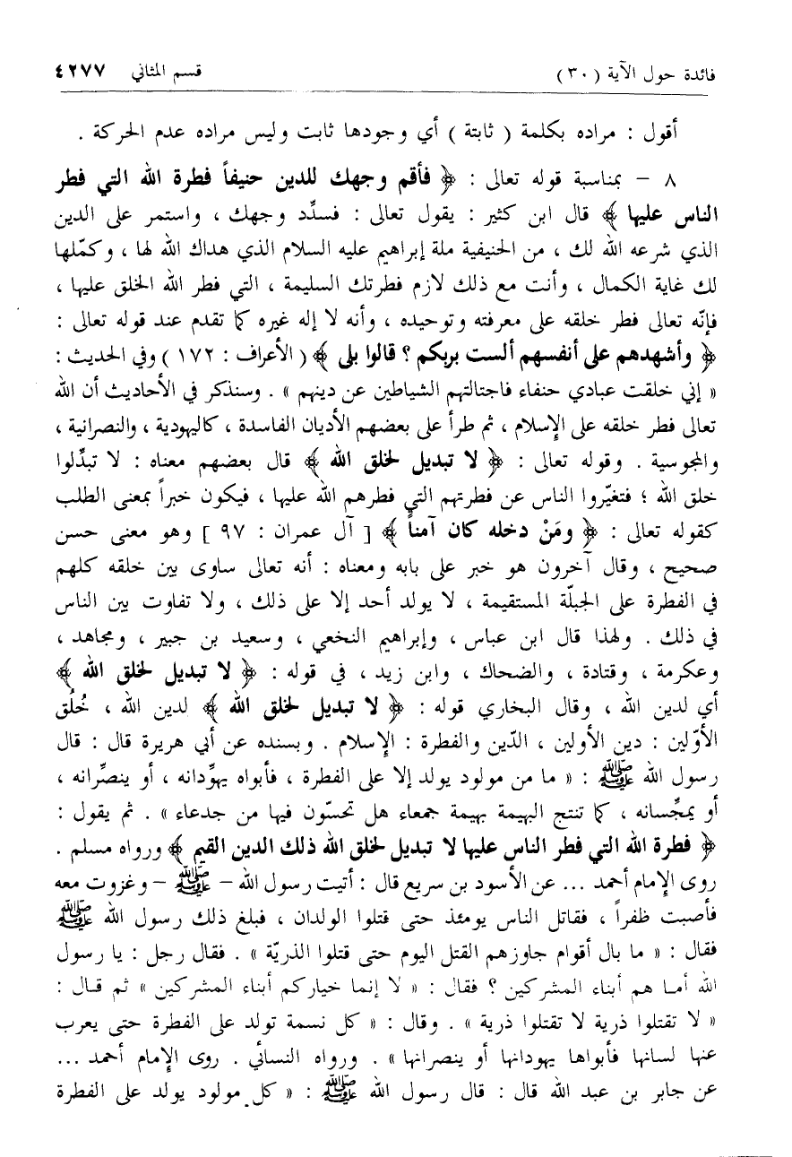 فِطْرَتَ اللَّهِ الَّتِي فَطَرَ النَّاسَ عَلَيْها لا تَبْدِيلَ لِخَلْقِ اللَّهِ ذلِكَ الدِّينُ الْقَيِّمُ ورواه مسلم.