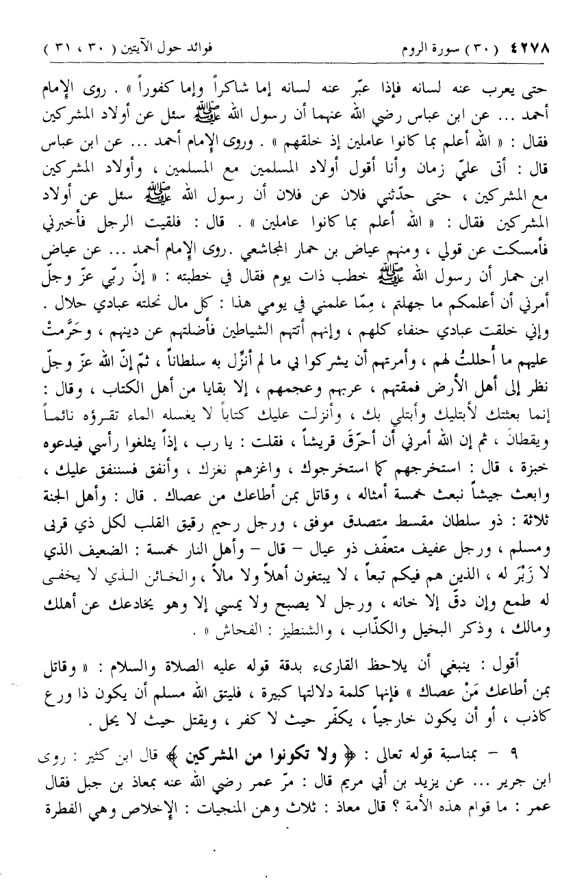 9 - [كلام ابن كثير بمناسبة قوله تعالى وَلا تَكُونُوا مِنَ الْمُشْرِكِينَ]