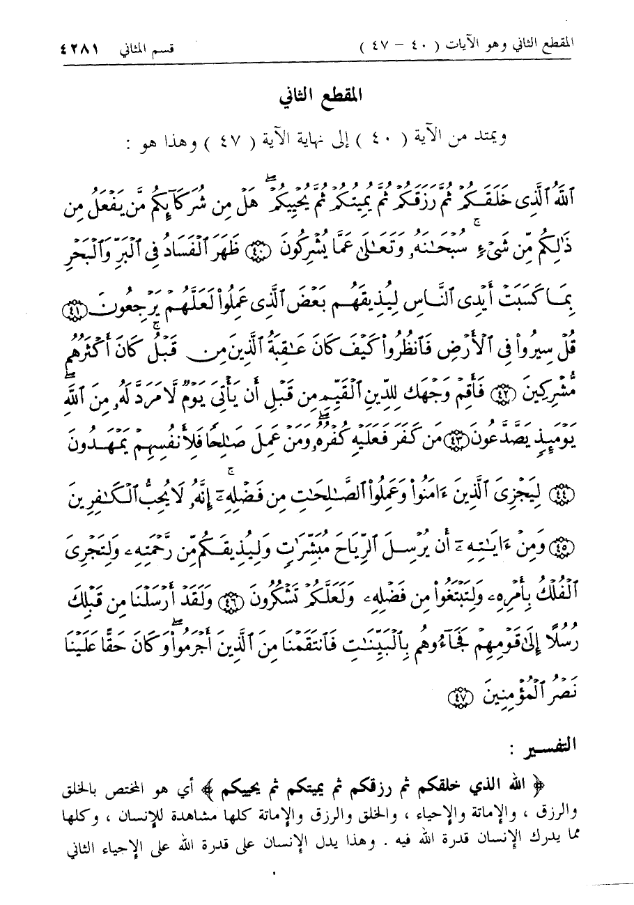المقطع الثاني ويمتد من الآية (40) إلى نهاية الآية (47) وهذا هو: