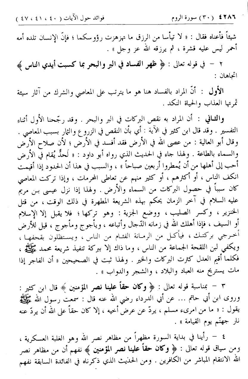 2 - [اتجاهان في تفسير آية ظَهَرَ الْفَسادُ فِي الْبَرِّ وَالْبَحْرِ بِما كَسَبَتْ أَيْدِي النَّاسِ]