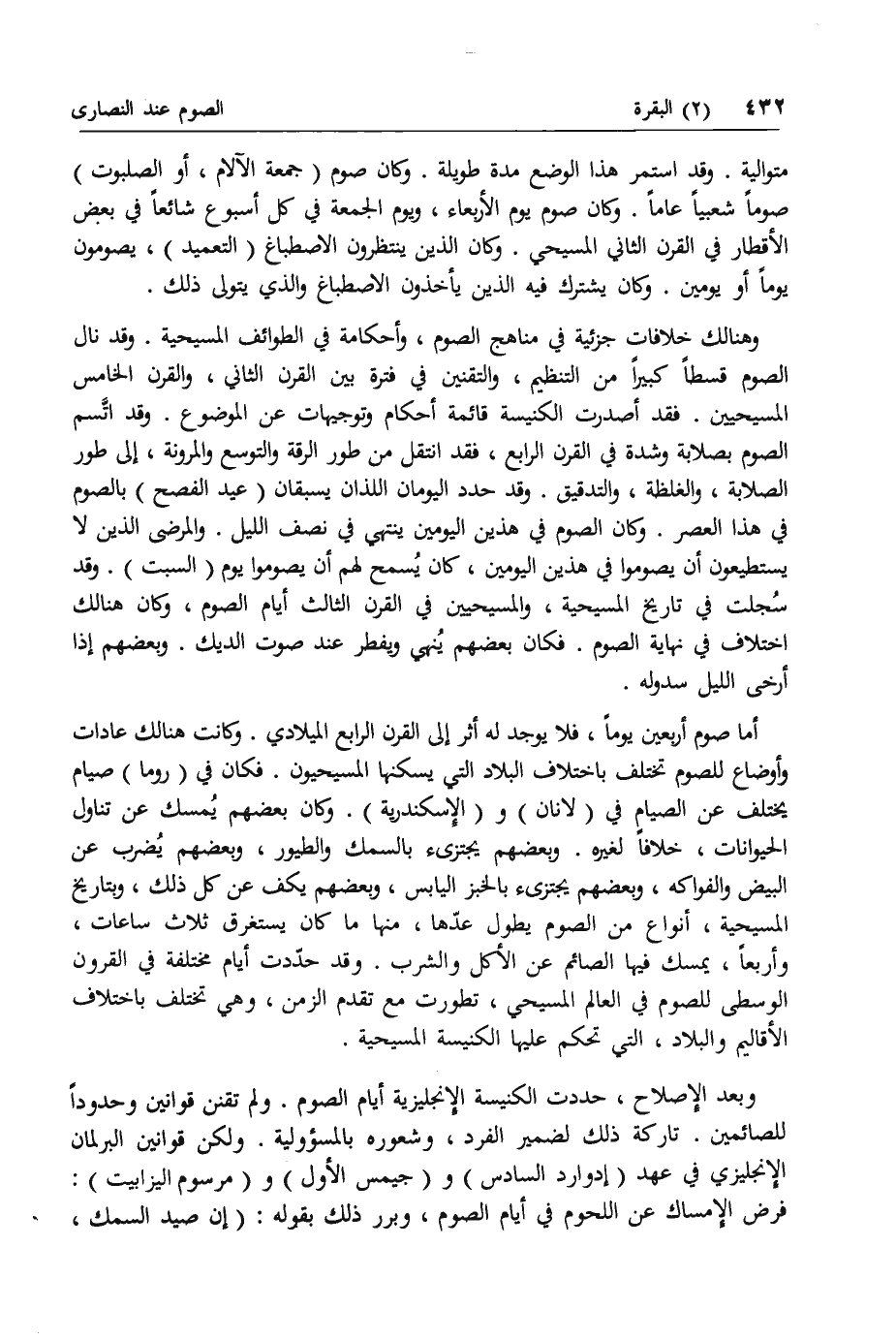 متوالية. وقد استمر هذا الوضع مدة طويلة. وكان صوم (جمعة الآلام، أو الصلبوت) صوما شعبيا عاما. وكان صوم يوم الأربعاء، ويوم الجمعة في كل أسبوع شائعا في بعض الأقطار في القرن الثاني المسيحي. وكان الذين ينتظرون الاصطباغ (التعميد)، يصومون يوما أو يومين. وكان يشترك فيه الذين يأخذون الاصطباغ والذي يتولى ذلك.
