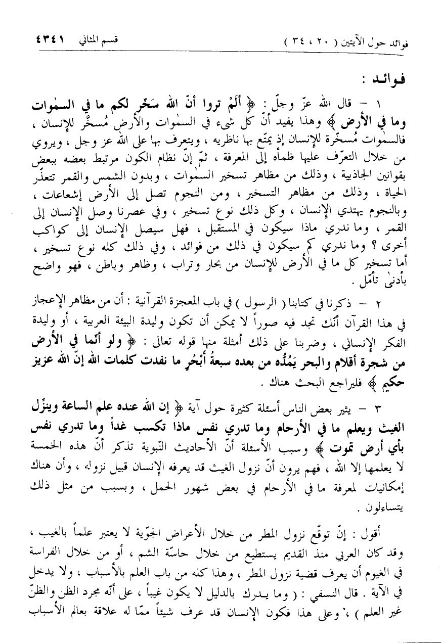3 - [حول ما أثير من تساؤلات عند الآية إِنَّ اللَّهَ عِنْدَهُ عِلْمُ السَّاعَةِ .. وتعليق المؤلف]