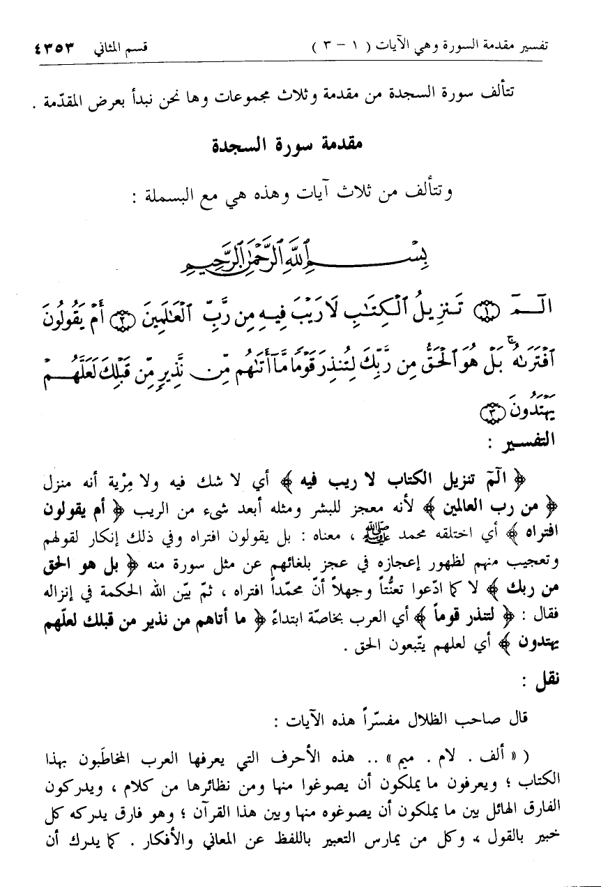 مقدمة سورة السجدة وتتألف من ثلاث آيات وهذه هي مع البسملة: