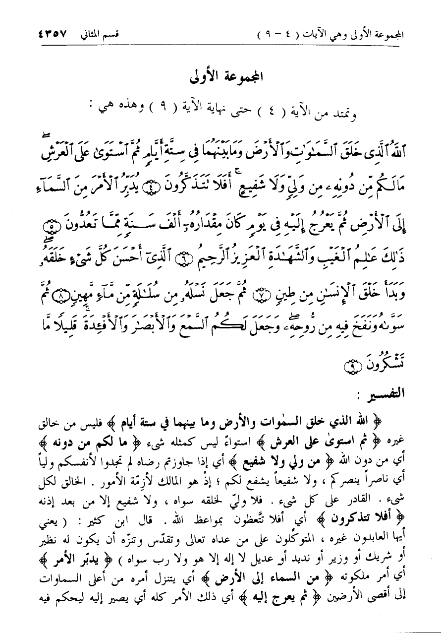 المجموعة الأولى وتمتد من الآية (4) حتى نهاية الآية (9) وهذه هي: