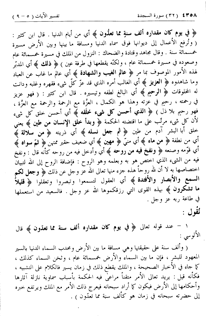 1 - [كلام الألوسي بمناسبة آية فِي يَوْمٍ كانَ مِقْدارُهُ أَلْفَ سَنَةٍ مِمَّا تَعُدُّونَ]