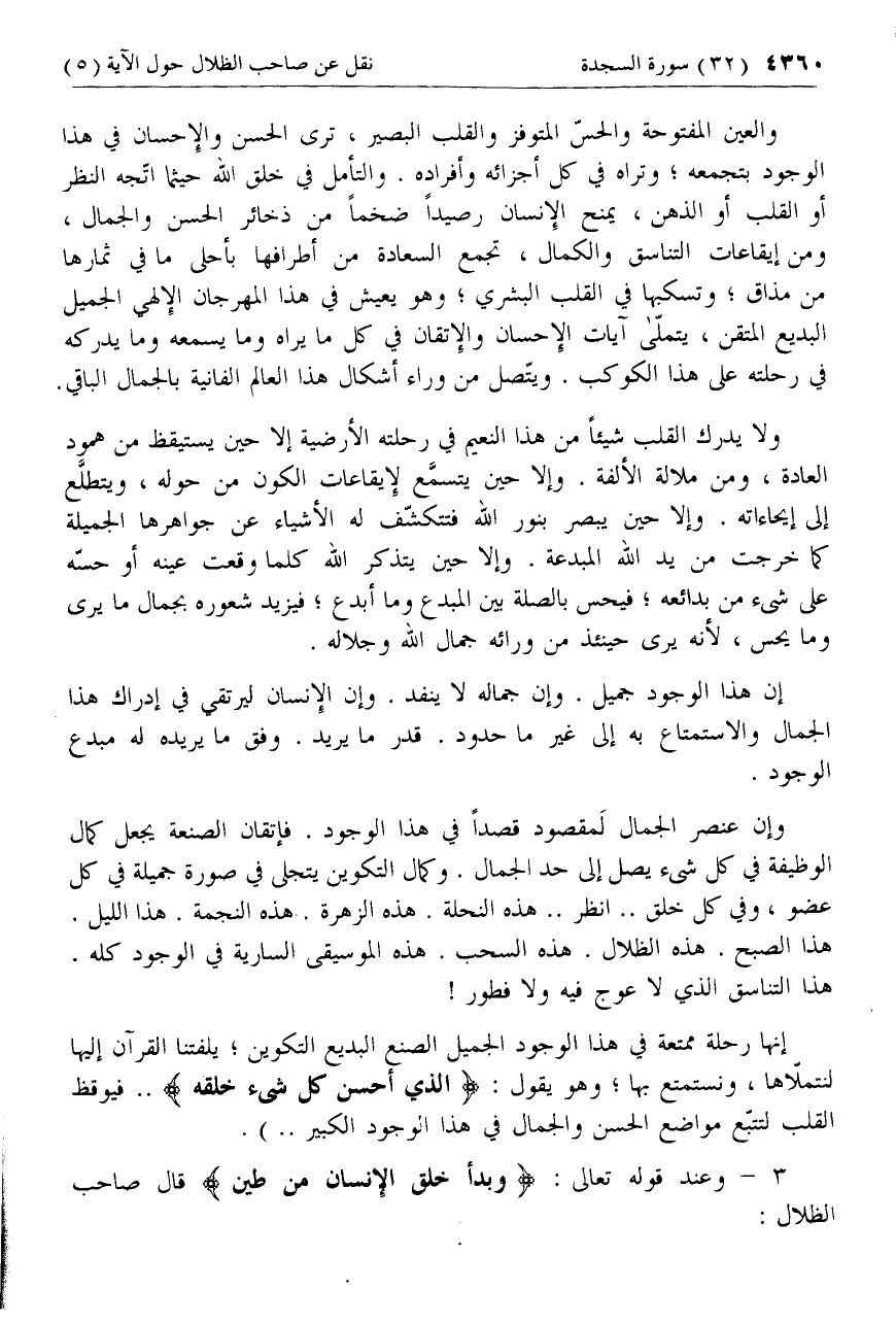 3 - [كلام صاحب الظلال بمناسبة آية وَبَدَأَ خَلْقَ الْإِنْسانِ مِنْ طِينٍ]