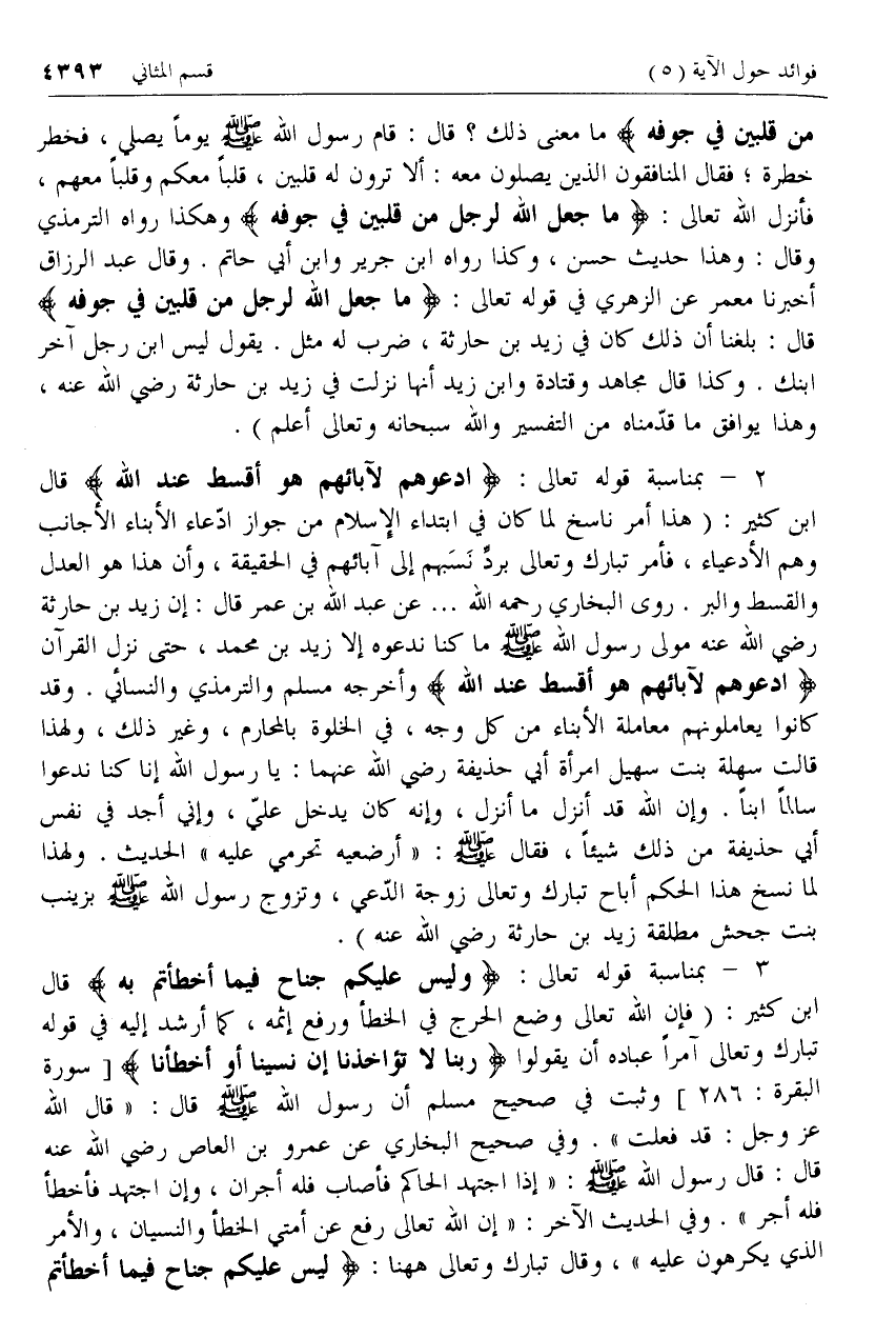 2 - [كلام ابن كثير بمناسبة آية ادْعُوهُمْ لِآبائِهِمْ هُوَ أَقْسَطُ .. ]