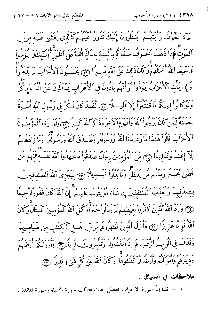 1 - قلنا إنّ سورة الأحزاب تفصّل حيث فصّلت سورة النساء وسورة المائدة،