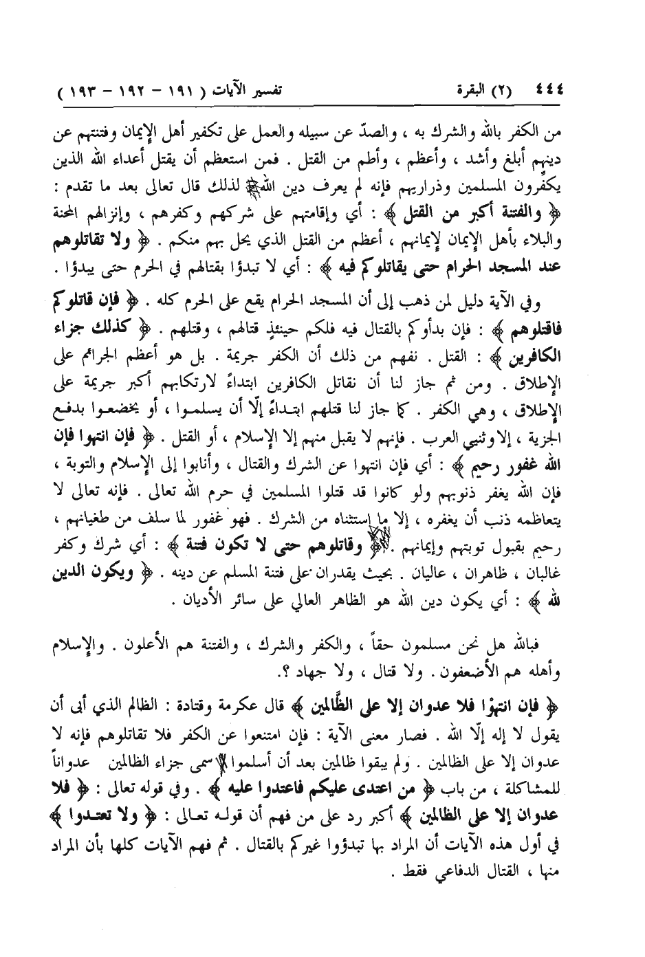 أكبر رد على من فهم أن قوله تعالى: وَلا تَعْتَدُوا في أول هذه الآيات أن المراد بها تبدءوا غيركم بالقتال. ثم فهم الآيات كلها بأن المراد منها، القتال الدفاعي فقط.
