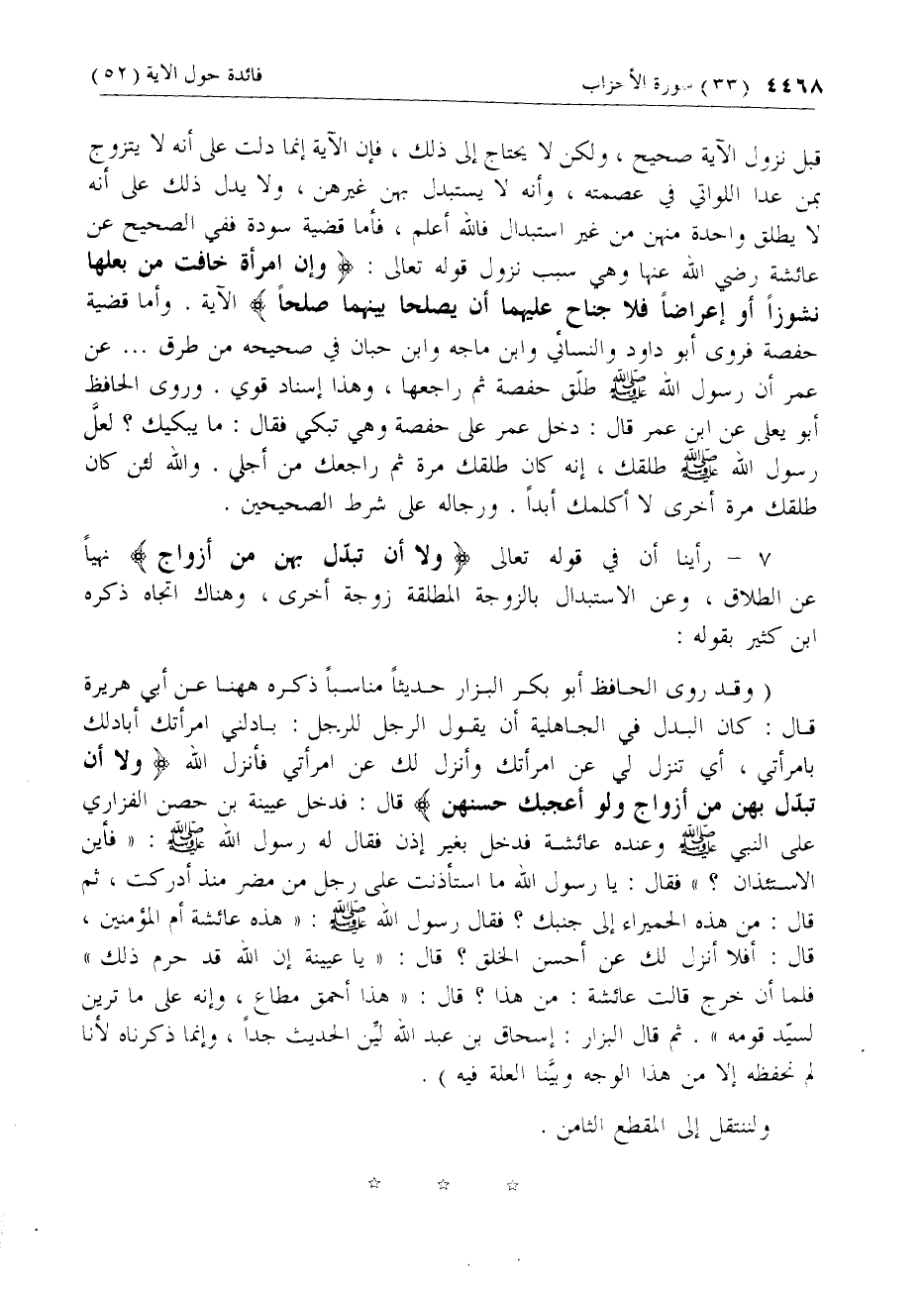 7 - [اتجاه آخر في تفسير آية وَلا أَنْ تَبَدَّلَ بِهِنَّ مِنْ أَزْواجٍ]