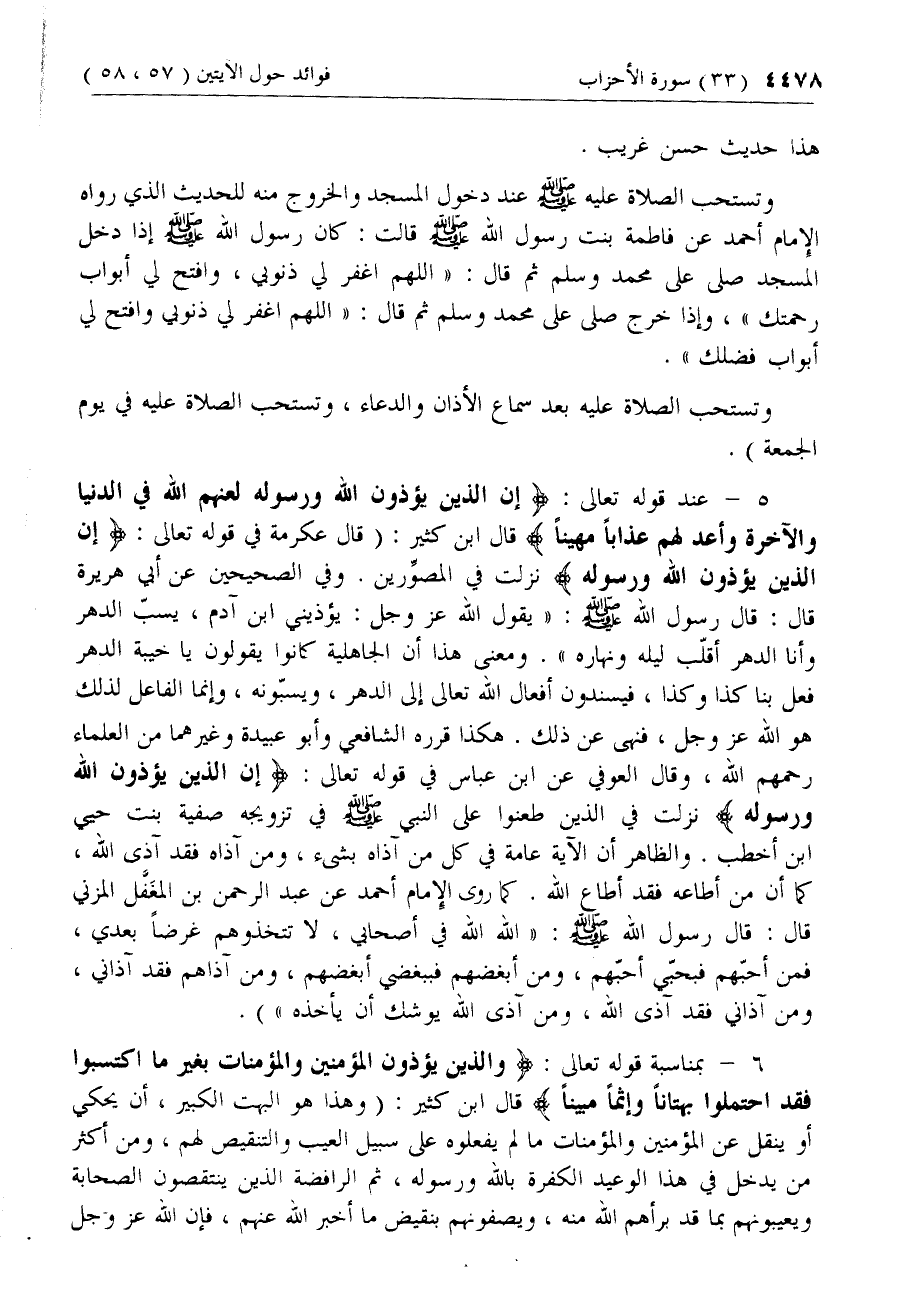 5 - [حول آية إِنَّ الَّذِينَ يُؤْذُونَ اللَّهَ وَرَسُولَهُ .. ]