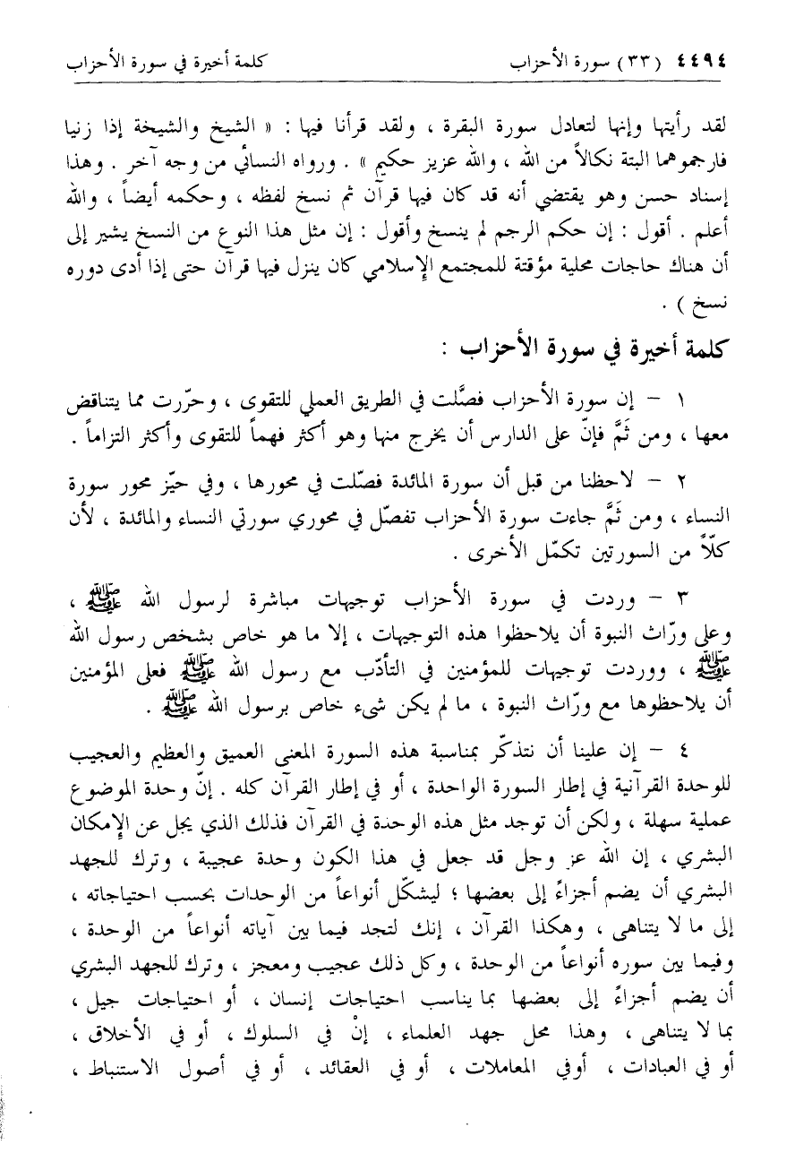 كلمة أخيرة في سورة الأحزاب: