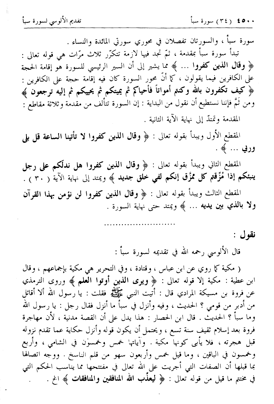 قال الألوسي رحمه الله في تقديمه لسورة سبأ: