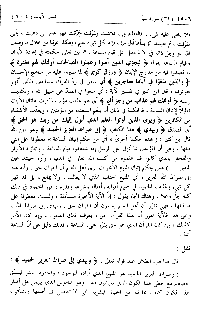 نقل: [عن صاحب الظلال بمناسبة قوله تعالى وَيَهْدِي إِلى صِراطِ الْعَزِيزِ الْحَمِيدِ]