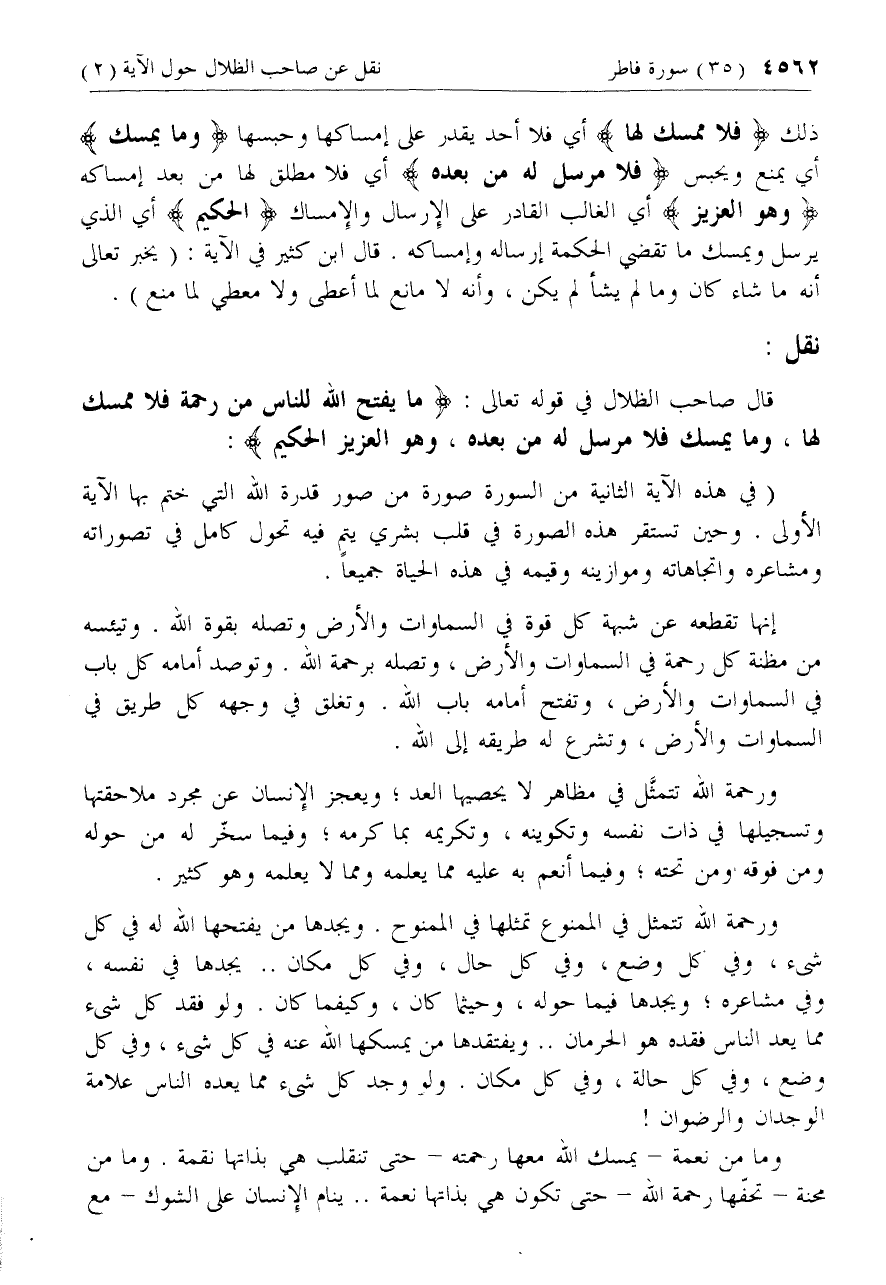 نقل: [عن صاحب الظلال بمناسبة آية ما يَفْتَحِ اللَّهُ لِلنَّاسِ مِنْ رَحْمَةٍ .. (2)]