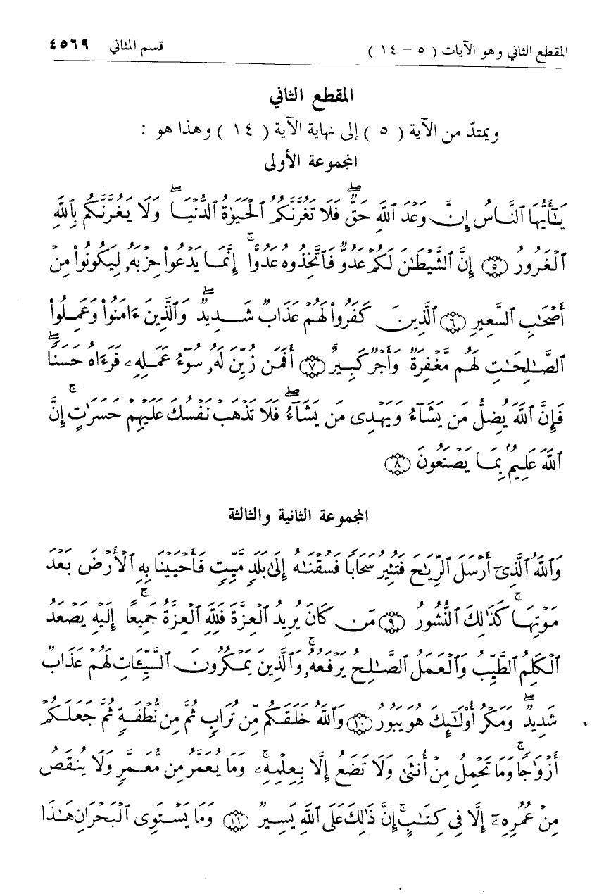 المقطع الثاني ويمتدّ من الآية (5) إلى نهاية الآية (14) وهذا هو: