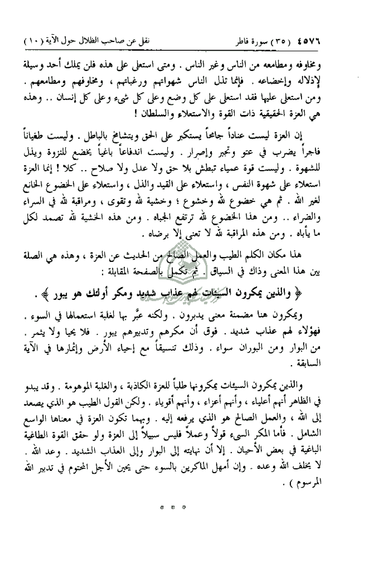 هذا مكان الكلم الطيب والعمل الصالح من الحديث عن العزة، وهذه هي الصلة بين هذا المعنى وذاك في السياق. ثم تكمل بالصفحة المقابلة: