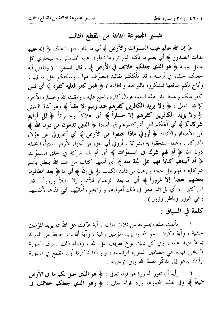 كلمة في السياق: [حول صلة المجموعة ببقية مجموعات المقطع وبالمحور، ثم عرض لمضمون المجموعة]