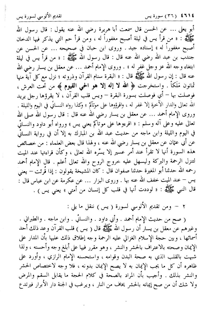 2 - ومن تقديم الألوسي لسورة (يس) ننقل ما يلي: