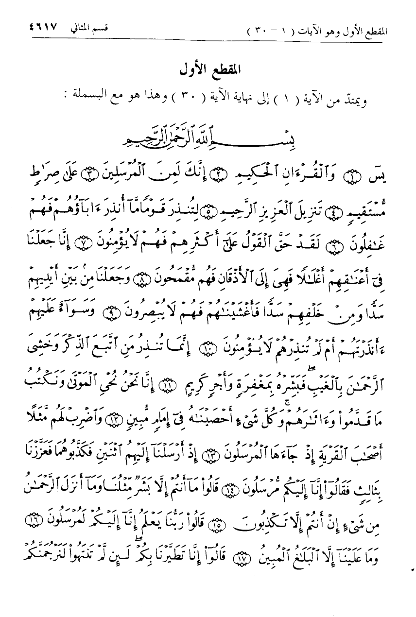 المقطع الأول ويمتدّ من الآية (1) إلى نهاية الآية (30) وهذا هو مع البسملة:
