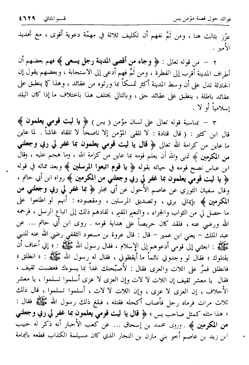 3 - [كلام ابن كثير بمناسبة قوله تعالى على لسان مؤمن (يس) يا لَيْتَ قَوْمِي يَعْلَمُونَ]