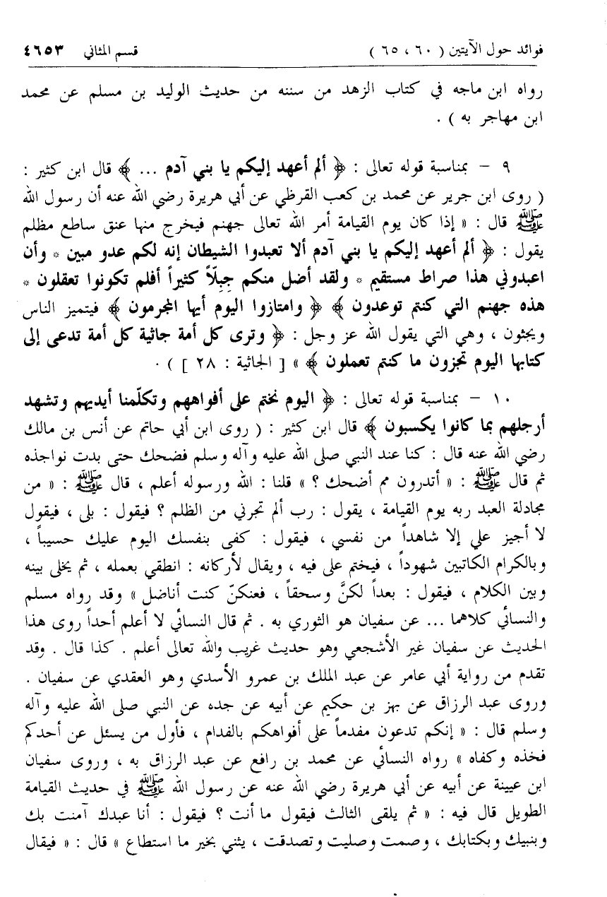 10 - [كلام ابن كثير بمناسبة آية الْيَوْمَ نَخْتِمُ عَلى أَفْواهِهِمْ.]