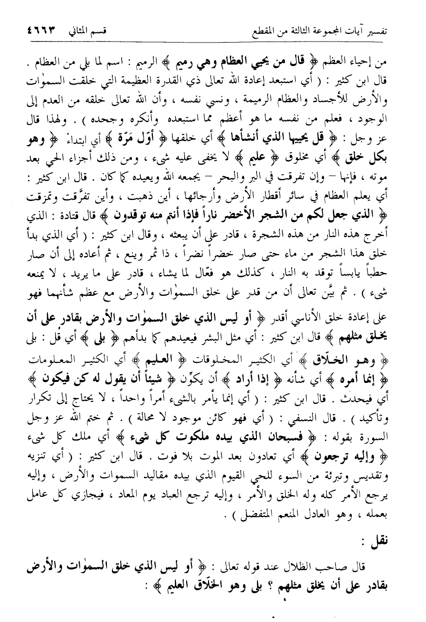 نقل: [لصاحب الظلال حول آية أَوَلَيْسَ الَّذِي خَلَقَ السَّماواتِ وَالْأَرْضَ بِقادِرٍ .. ]