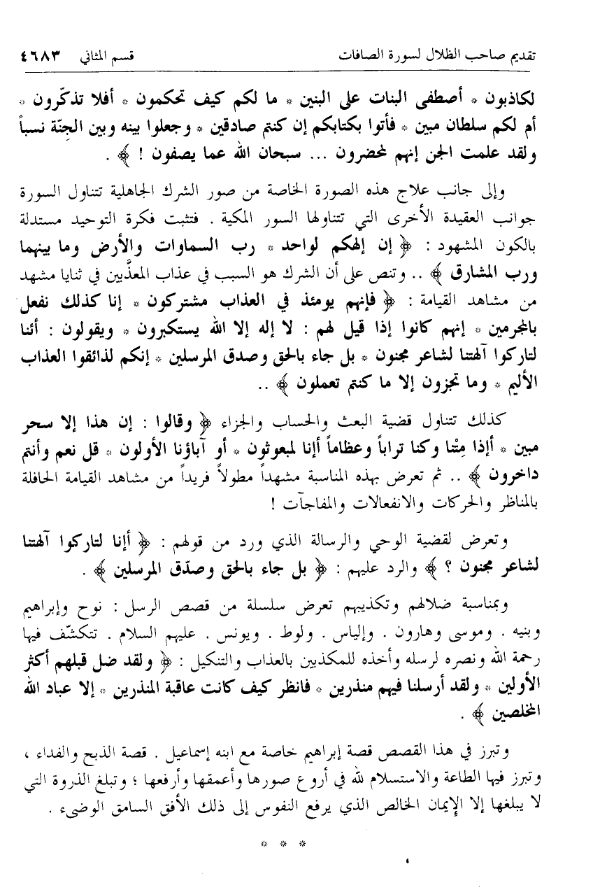 وتعرض لقضية الوحي والرسالة الذي ورد من قولهم: أَإِنَّا لَتارِكُوا آلِهَتِنا لِشاعِرٍ مَجْنُونٍ؟ والرد عليهم: بَلْ جاءَ بِالْحَقِّ وَصَدَّقَ الْمُرْسَلِينَ.