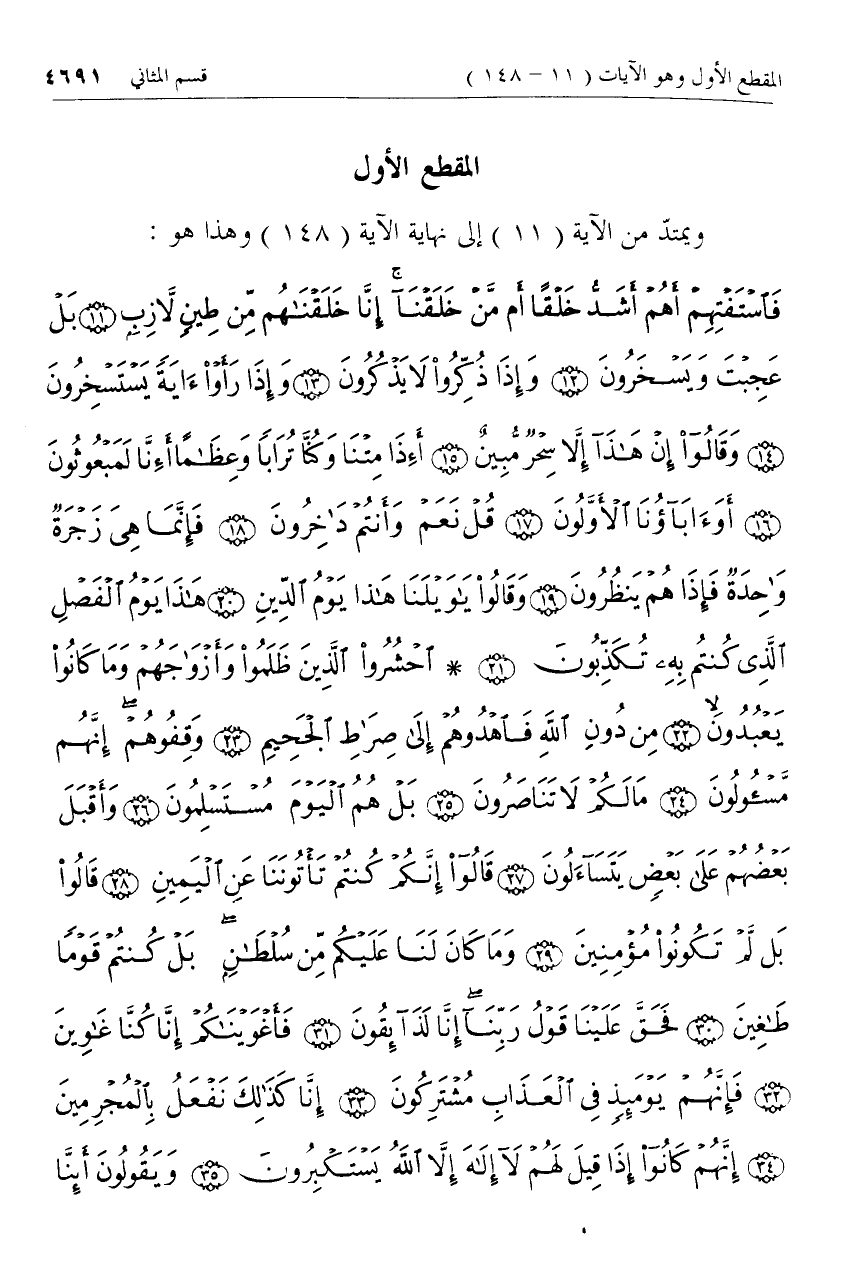 المقطع الأول ويمتدّ من الآية (11) إلى نهاية الآية (148) وهذا هو: