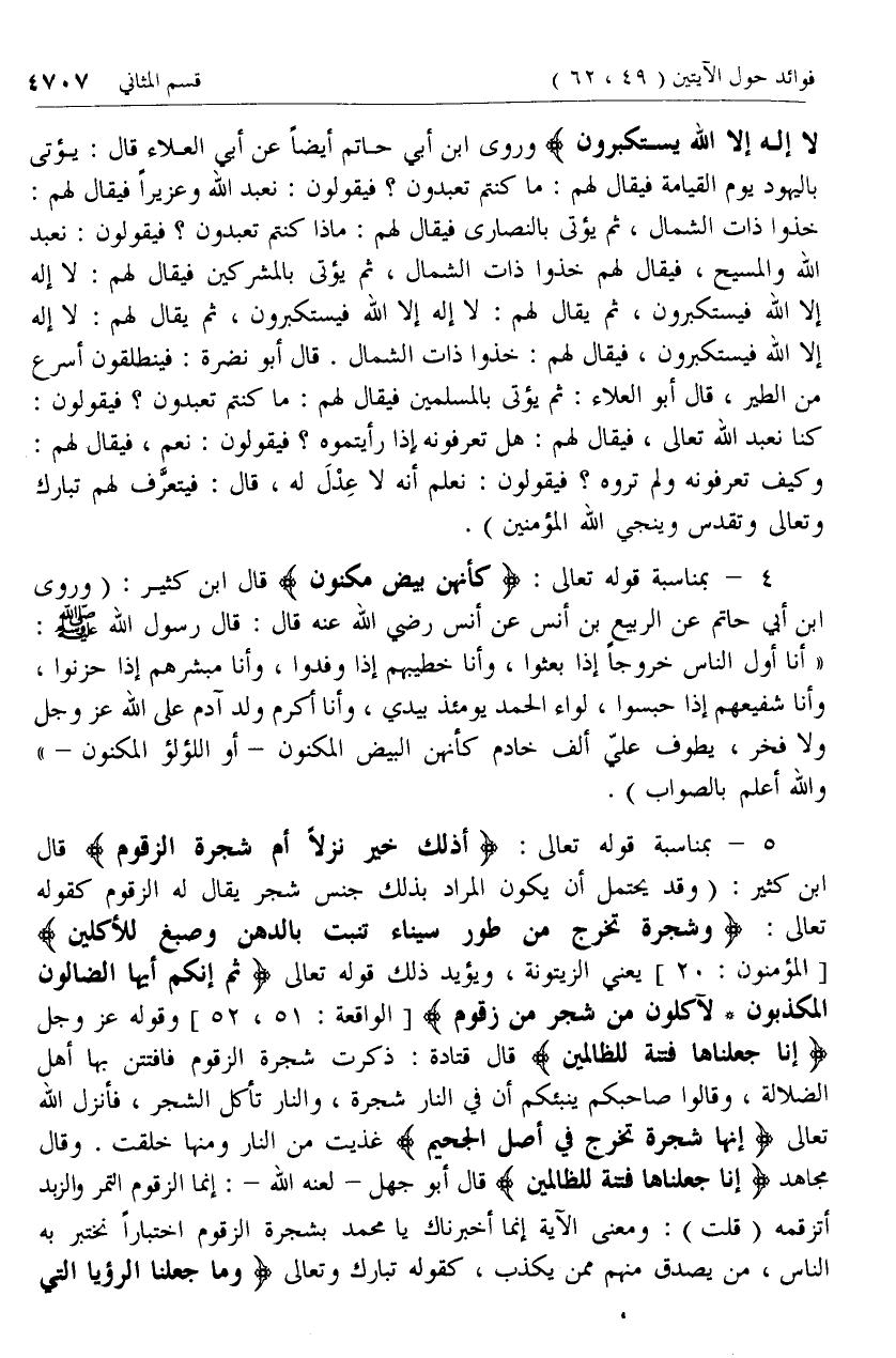 5 - [كلام ابن كثير حول آية أَذلِكَ خَيْرٌ نُزُلًا أَمْ شَجَرَةُ الزَّقُّومِ وما ورد عن الزقوم]