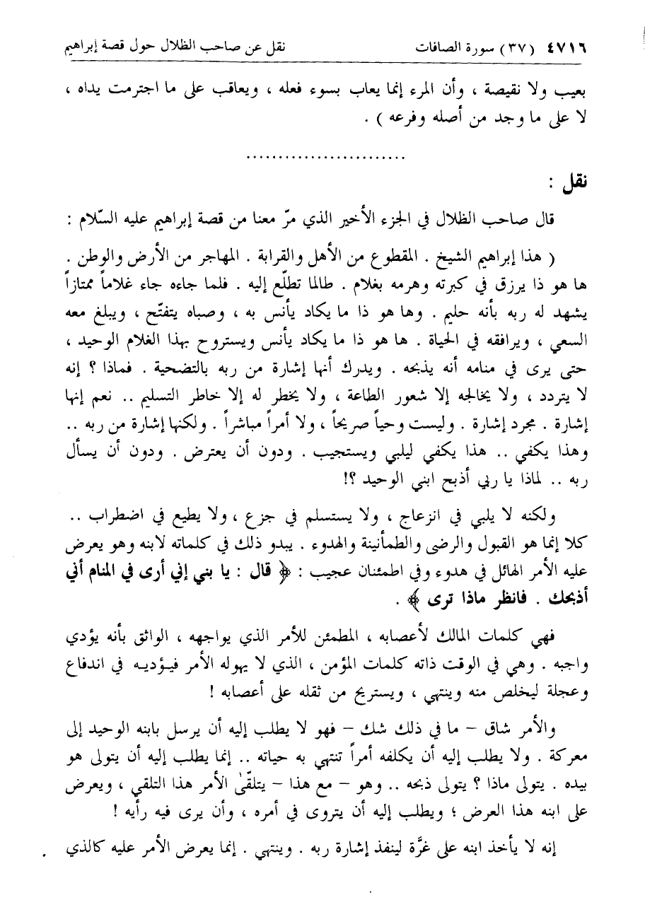 نقل: [عن صاحب الظلال حول ورود قصة إبراهيم عليه السلام في السورة]