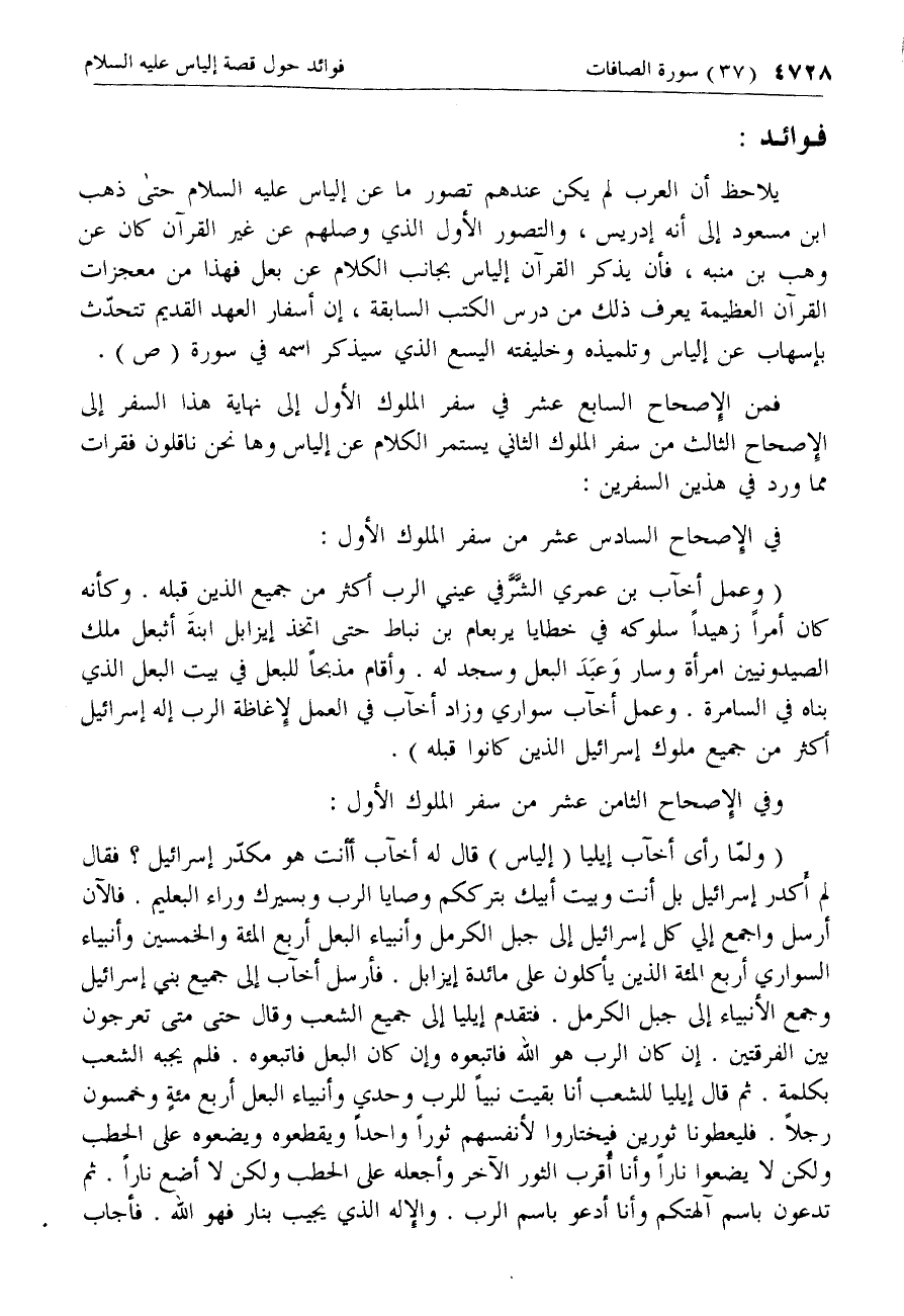 فوائد: [حول قصة إلياس عليه السلام ونقول من كتاب العهد القديم]