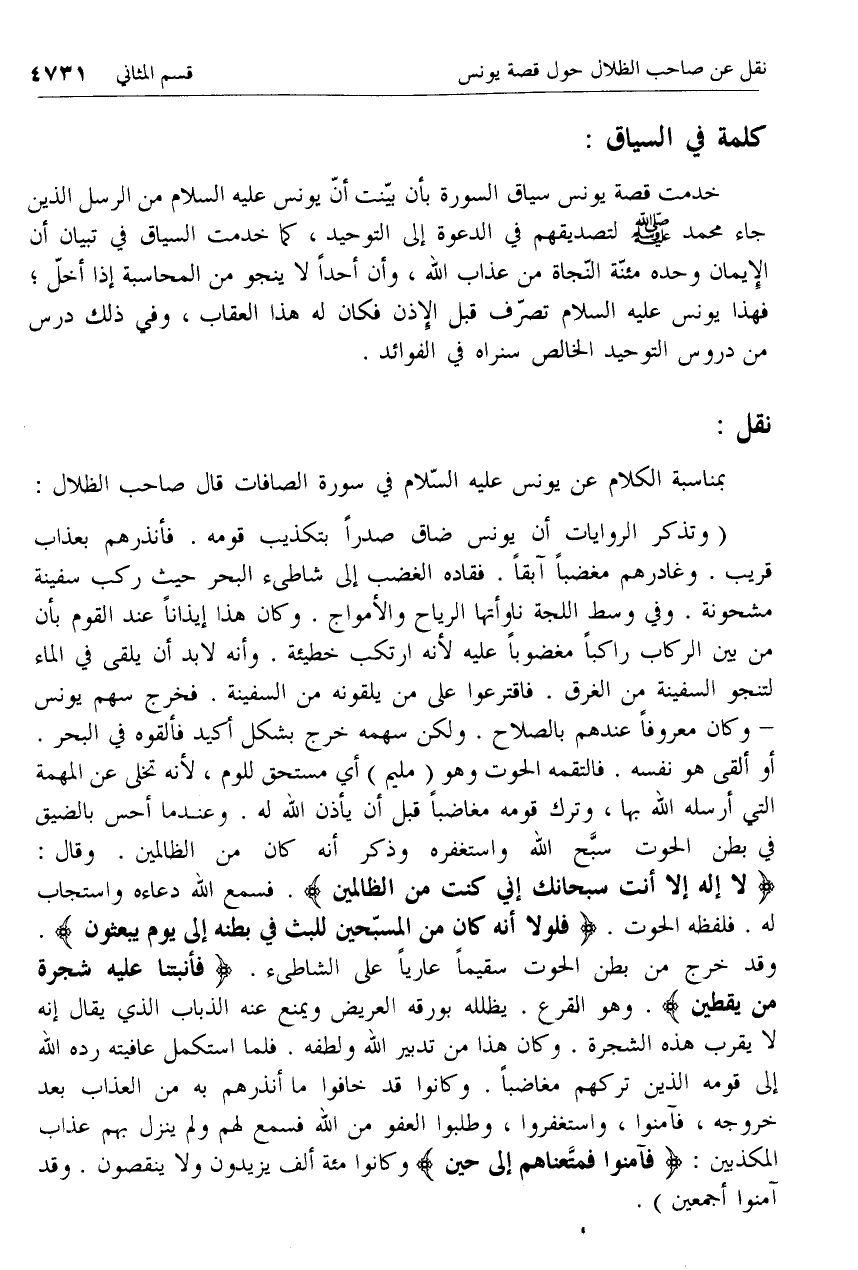 نقل: [لصاحب الظلال بمناسبة ورود قصة يونس عليه السلام في سورة الصافات]