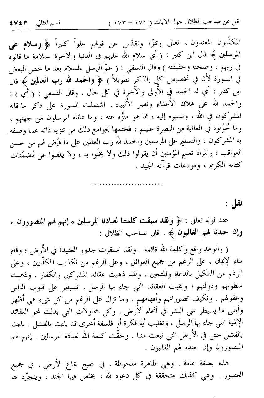 نقل: [لصاحب الظلال بمناسبة قوله تعالى وَلَقَدْ سَبَقَتْ كَلِمَتُنا لِعِبادِنَا الْمُرْسَلِينَ .. ]