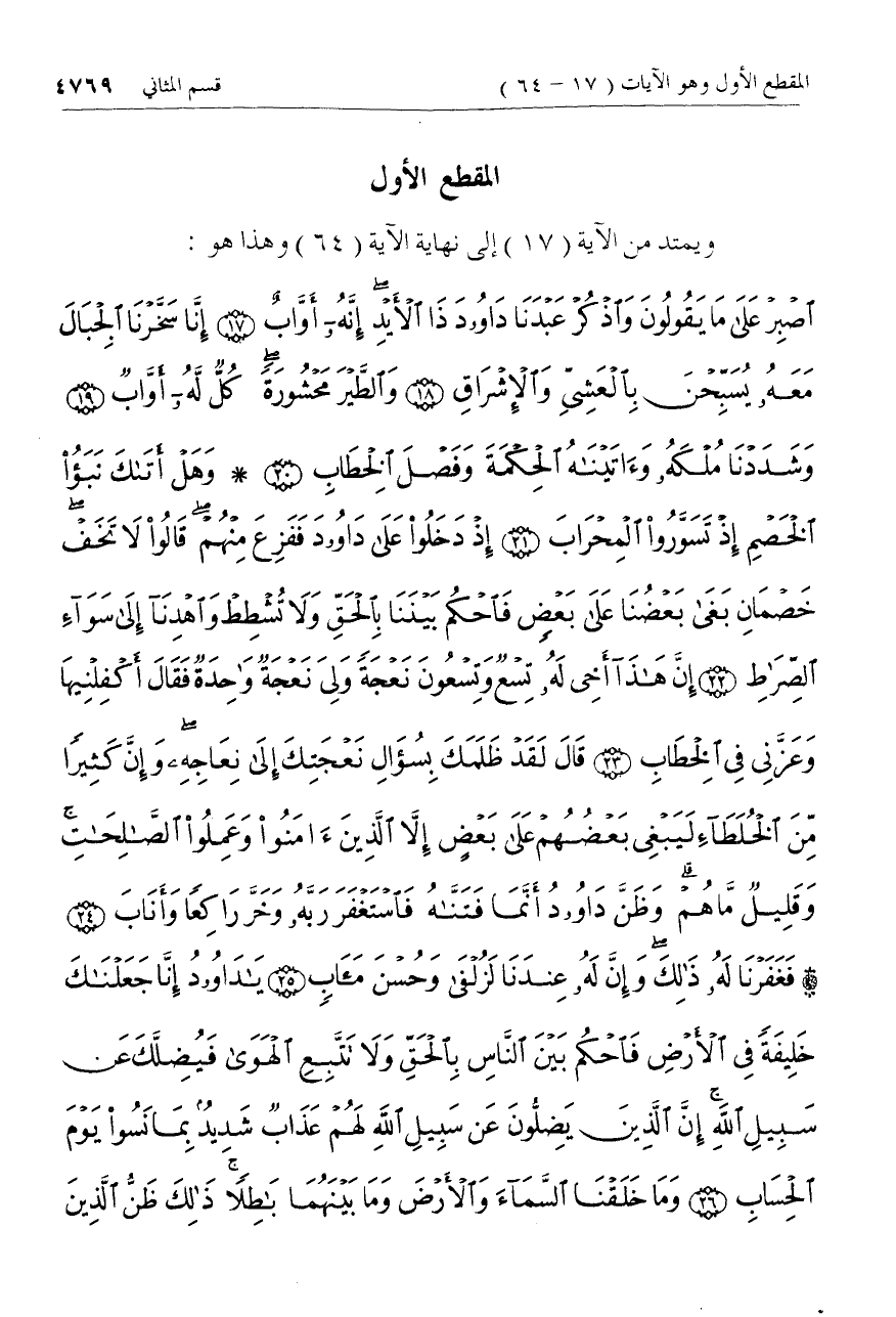 المقطع الأول ويمتد من الآية (17) إلى نهاية الآية (64) وهذا هو: