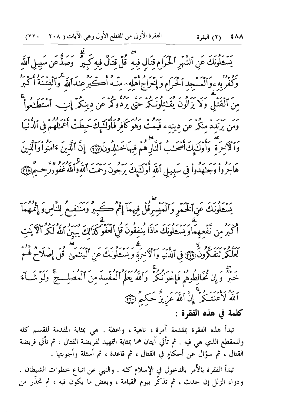 تبدأ هذه الفقرة بمقدمة آمرة، ناهية، واعظة. هي بمثابة المقدمة للقسم كله وللمقطع الذي هي فيه. ثم تأتي آيتان هما بمثابة التمهيد لفريضة القتال، ثم تأتي فريضة القتال، ثم سؤال عن أحكام في القتال، ثم قاعدة، ثم أسئلة وأجوبتها.