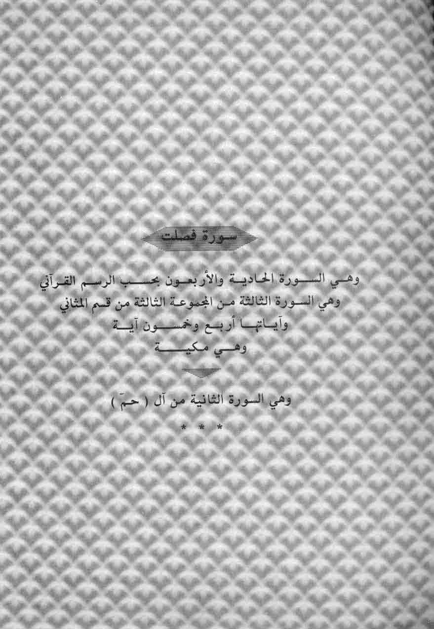 وهي السّورة الحادية والأربعون بحسب الرّسم القرآني وهي السّورة الثالثة من المجموعة الثالثة من قسم المثاني وآياتها أربع وخمسون آية وهي مكيّة وهي السّورة الثانية من آل (حم)