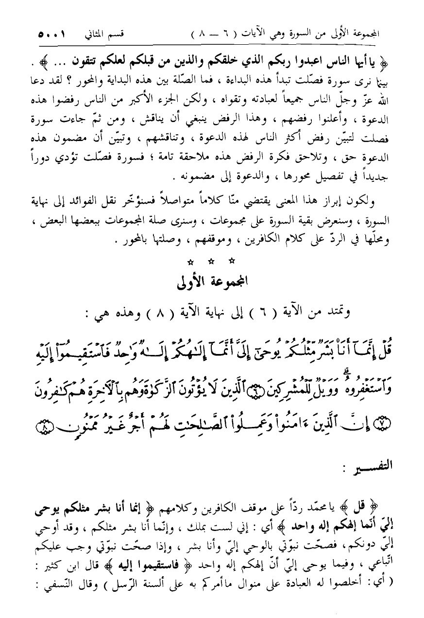 *** المجموعة الأولى وتمتد من الآية (6) إلى نهاية الآية (8) وهذه هي: