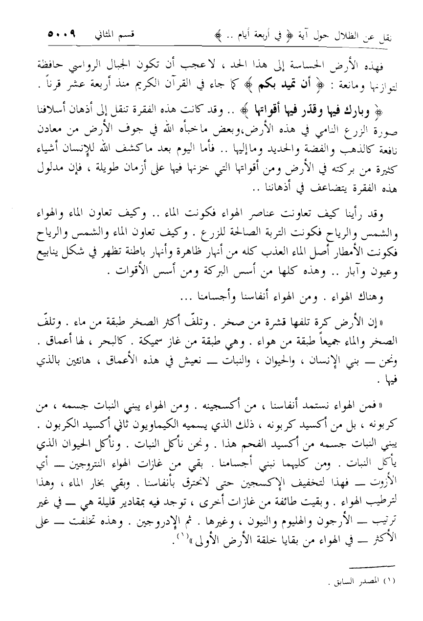 وَبارَكَ فِيها وَقَدَّرَ فِيها أَقْواتَها .. وقد كانت هذه الفقرة تنقل إلى أذهان أسلافنا صورة الزرع النامي في هذه الأرض، وبعض ما خبأه الله في جوف الأرض من معادن نافعة كالذهب والفضة والحديد وما إليها .. فأما اليوم بعد ما كشف الله للإنسان أشياء كثيرة من بركته في الأرض ومن أقواتها التي خزنها فيها على أزمان طويلة، فإن مدلول هذه الفقرة يتضاعف في أذهاننا ..