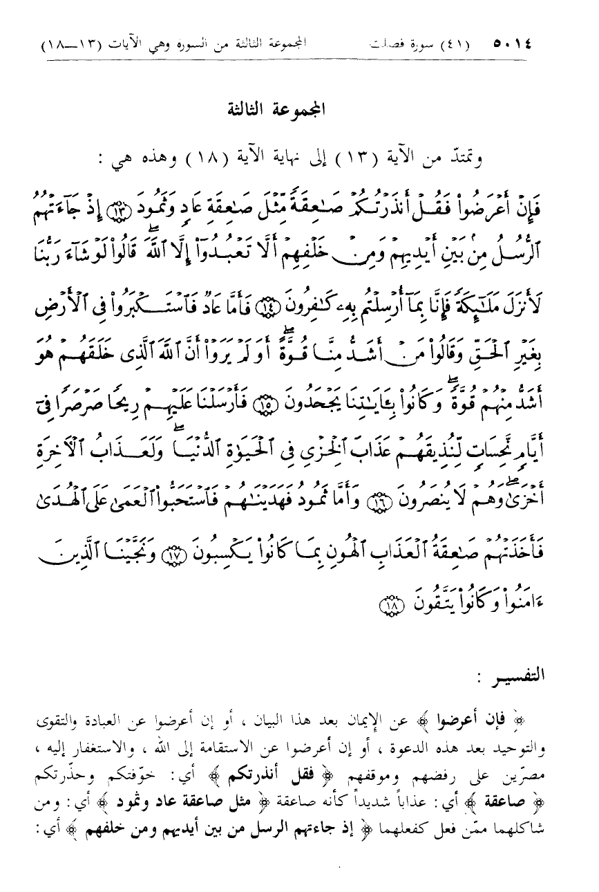 المجموعة الثالثة وتمتدّ من الآية (13) إلى نهاية الآية (18) وهذه هي: