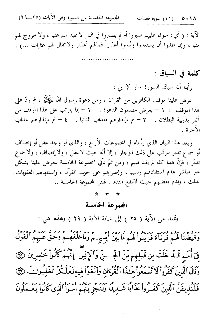 *** المجموعة الخامسة وتمتد من الآية (25) إلى نهاية الآية (29) وهذه هي: