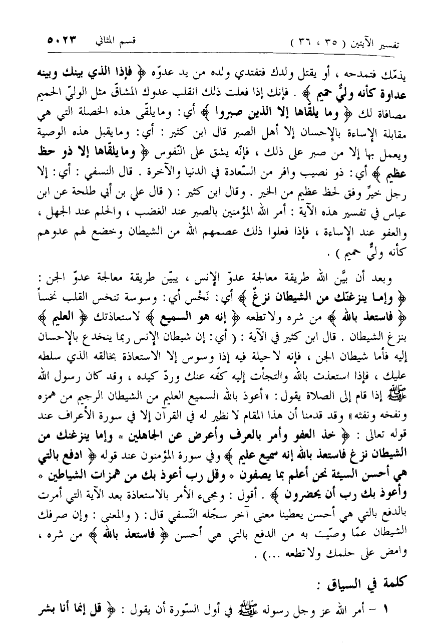 وبعد أن بيّن الله طريقة معالجة عدوّ الإنس، يبيّن طريقة معالجة عدوّ الجن: