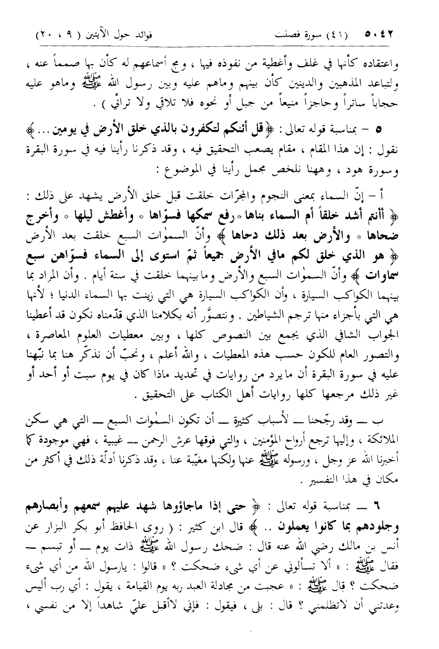 5 - [عرض لرأي المؤلف في موضوع خلق الأرض من خلال الآية (9)]