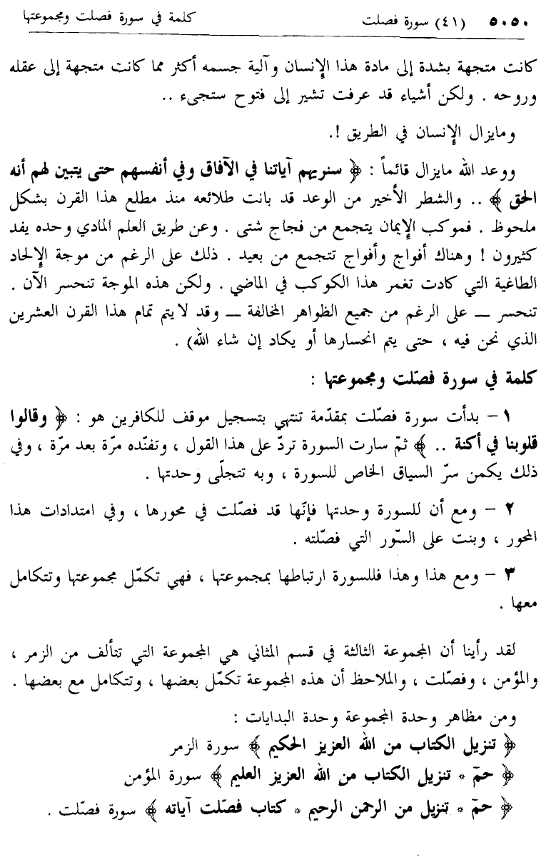 حم* تَنْزِيلٌ مِنَ الرَّحْمنِ الرَّحِيمِ* كِتابٌ فُصِّلَتْ آياتُهُ سورة فصّلت.