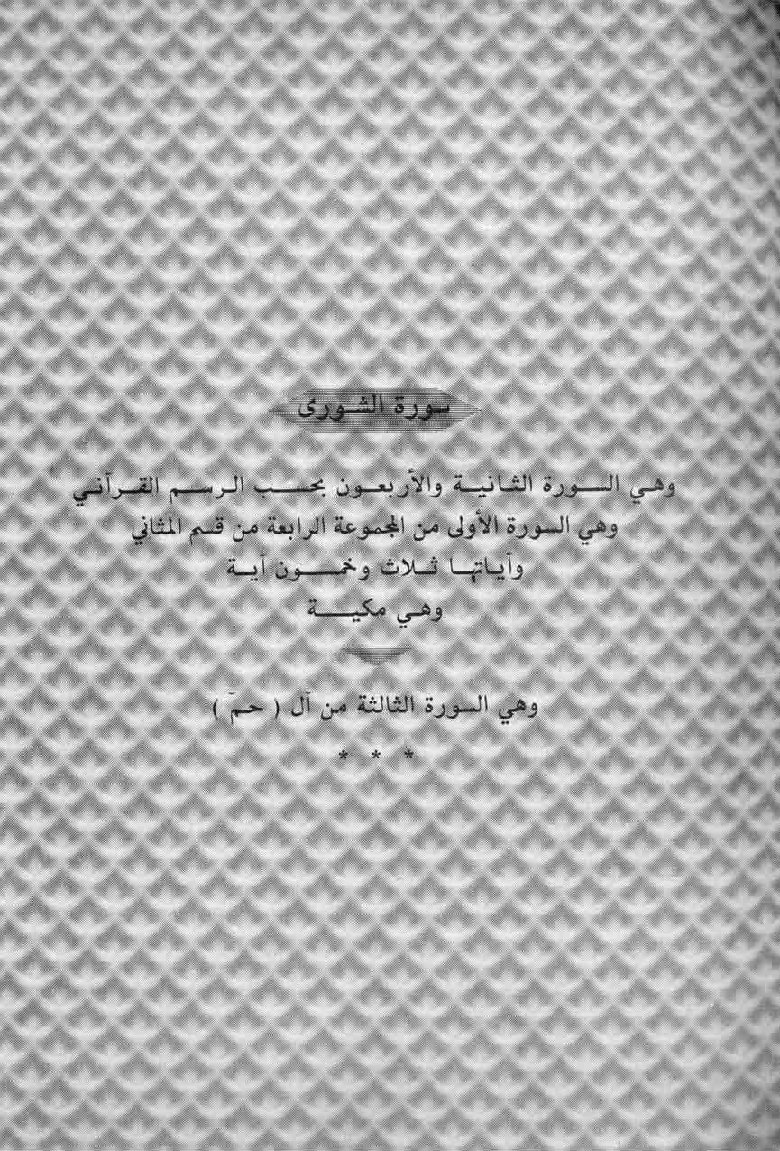 وهي السّورة الثانية والأربعون بحسب الرّسم القرآني وهي السّورة الأولى من المجموعة الرابعة من قسم المثاني وآياتها ثلاث وخمسون آية وهي مكيّة وهي السّورة الثالثة من آل (حم)