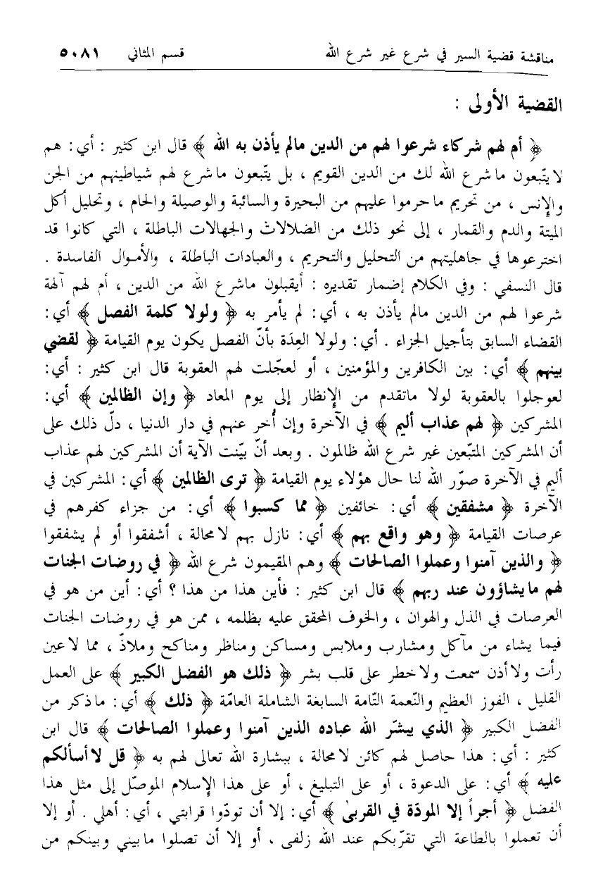 القضية الأولى: [مناقشة قضية السير في شرع غير شرع الله بمناسبة الآيات (21 - 23)]