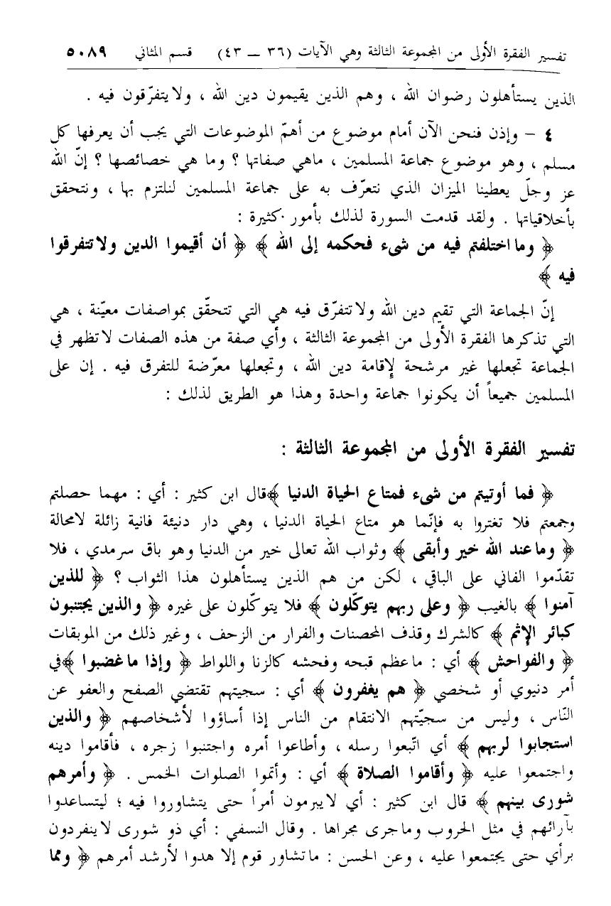 إنّ الجماعة التي تقيم دين الله ولا تتفرّق فيه هي التي تتحقّق بمواصفات معيّنة، هي التي تذكرها الفقرة الأولى من المجموعة الثالثة، وأي صفة من هذه الصفات لا تظهر في الجماعة تجعلها غير مرشحة لإقامة دين الله، وتجعلها معرّضة للتفرق فيه. إن على المسلمين جميعا أن يكونوا جماعة واحدة وهذا هو الطريق لذلك: