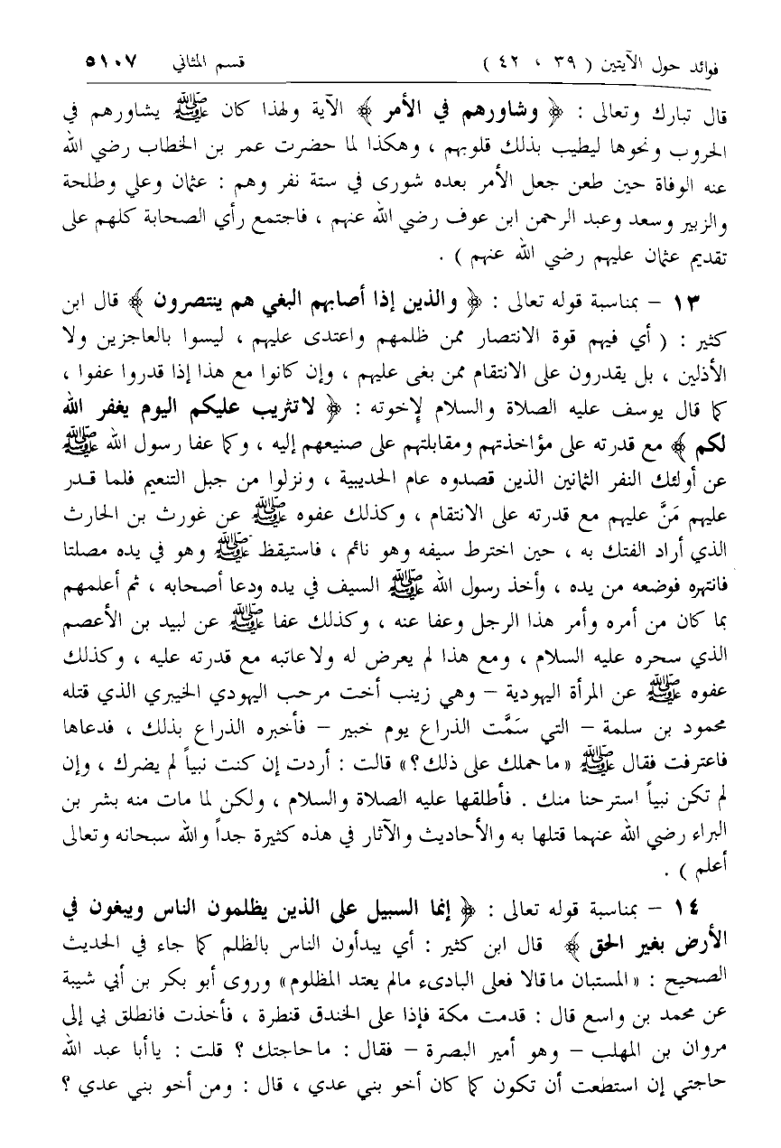 13 - [كلام ابن كثير عن الانتصار من البغي بمناسبة آية وَالَّذِينَ إِذا أَصابَهُمُ الْبَغْيُ .. ]