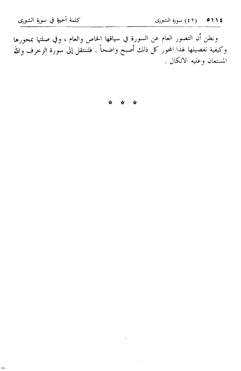 ونظن أن التصور العام عن السورة في سياقها الخاص والعام، وفي صلتها بمحورها وكيفية تفصيلها لهذا المحور كل ذلك أصبح واضحا. فلننتقل إلى سورة الزخرف والله المستعان وعليه الاتكال.